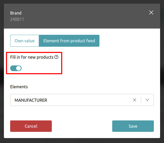 You also have the choice between selecting your own value and pairing it with an element from the product feed.