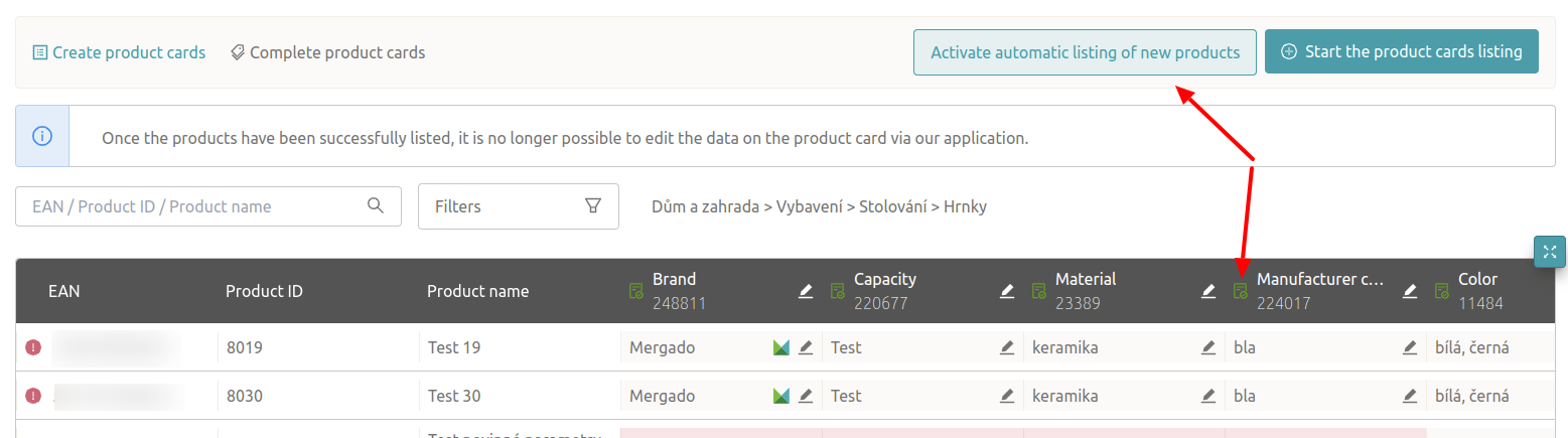 When you activate automatic listing of new products, the creation of product cards will immediately start for all unlisted products with filled-in required parameters.