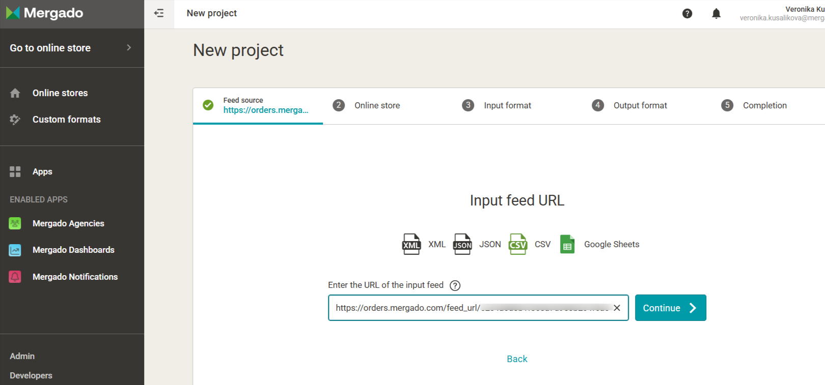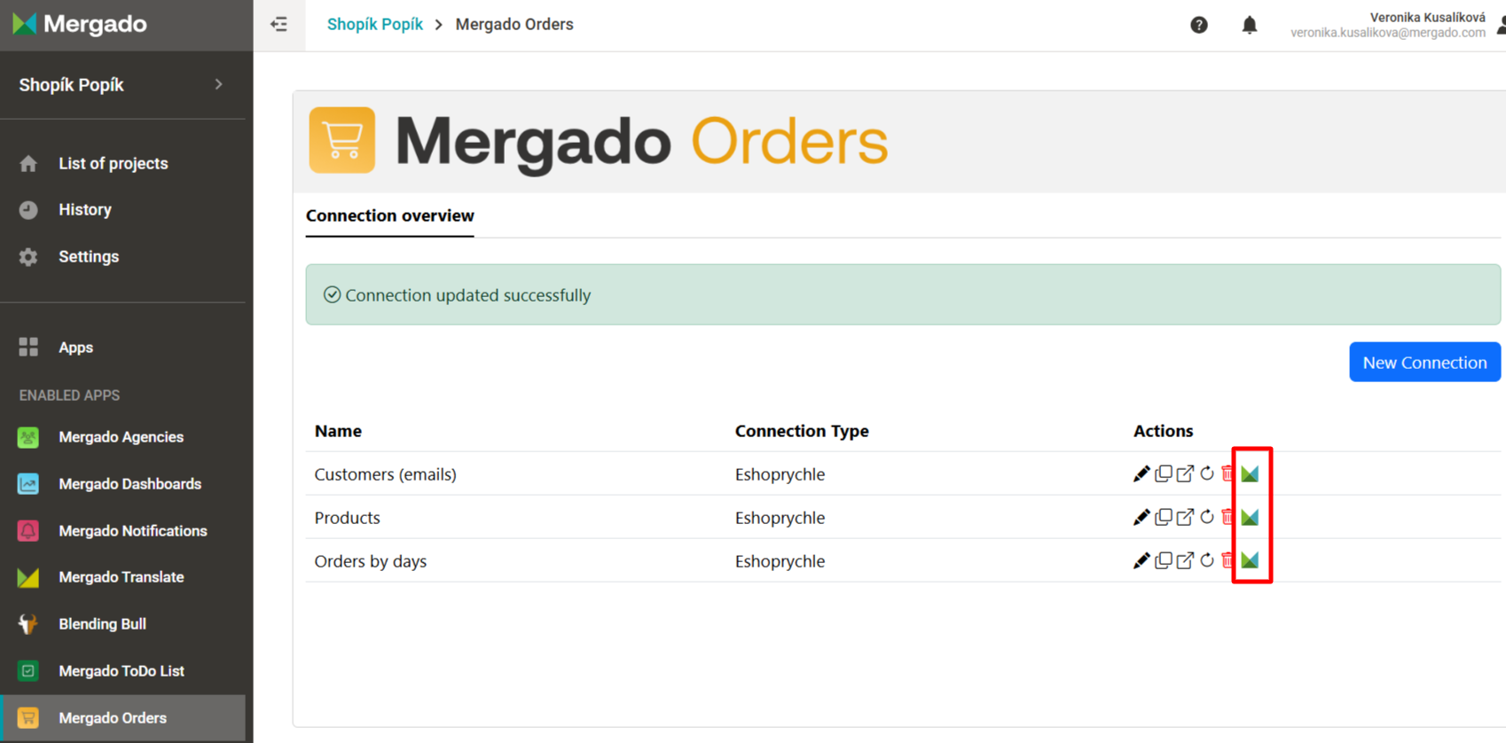 An icon has been added to exports that will redirect you directly to creating a new project. This will significantly speed up the transfer of your data to the Mergado Editor.